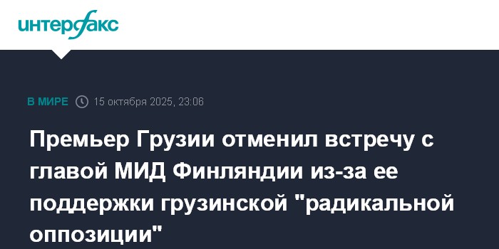 Премьер Грузии отменил встречу с главой МИД Финляндии из-за ее поддержки грузинской "радикальной оппозиции"