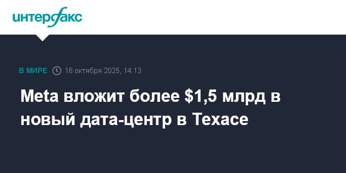 Meta вложит более $1,5 млрд в новый дата-центр в Техасе