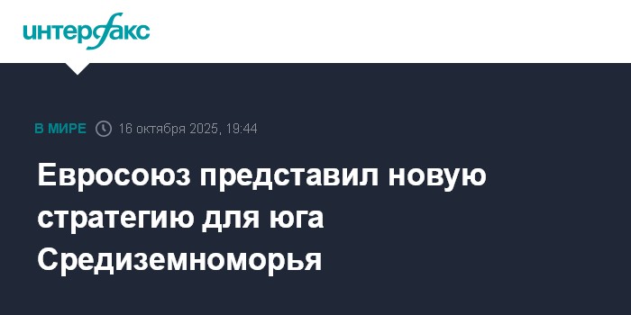 Москва. 16 октября. INTERFAX.RU - Еврокомиссия и глава дипломатии Евросоюза Кая Каллас представили новую стратегию укрепления отношений Евросоюза с партнерами в южном Средиземноморье, которую в Брюсселе называют "средиземноморским пактом".