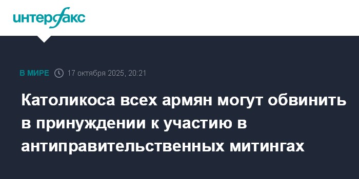 Москва. 17 октября. INTERFAX.RU - Следственный комитет Армении возбудил уголовное дело на основании записи телефонного разговора, в котором упоминается имя католикоса всех армян Гарегина Второго в контексте принуждения священнослужителей к участию в антиправительственных митингах.