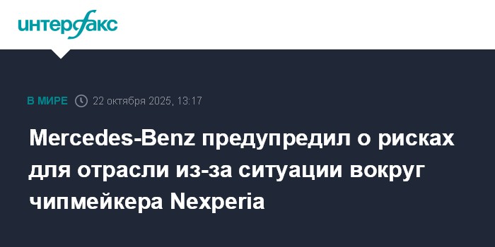 Москва. 22 октября. INTERFAX.RU - Mercedes-Benz обеспечил себе достаточные поставки чипов на ближайшую перспективу и внимательно следит за событиями вокруг производителя полупроводниковых компонентов Nexperia, взятого под контроль правительством Нидерландов ранее в этом месяце.