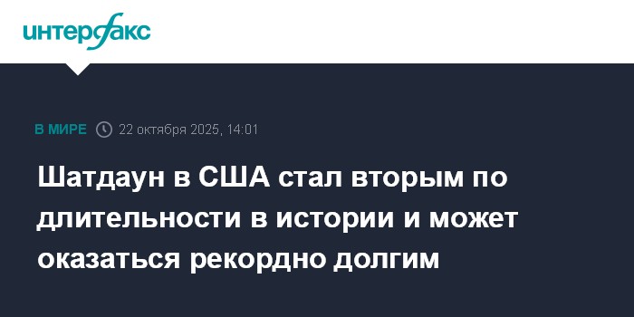Москва. 22 октября. INTERFAX.RU - Шатдаун в США, продолжающийся 22-й день, уже является вторым по длительности за всю историю и может стать рекордно долгим.