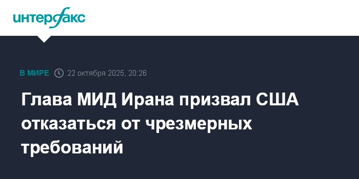 Москва. 22 октября. INTERFAX.RU - Министр иностранных дел Аббас Аракчи заявил, что Тегеран не вернется за стол переговоров с США, пока те не перестанут предъявлять слишком много требований, сообщает агентство Tasnim.
