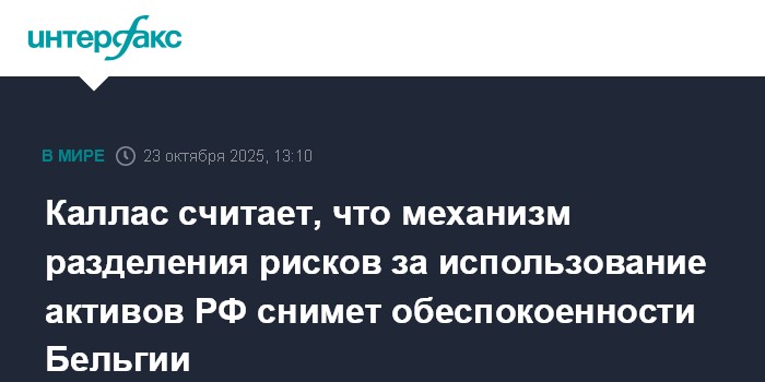 Москва. 23 октября. INTERFAX.RU - Механизм разделения ответственности за использование замороженных активов РФ для "репарационного кредита" Украине устранит обеспокоенности Бельгии относительно угрожающих ей рисков, заявила глава дипломатии ЕС Кая Каллас.