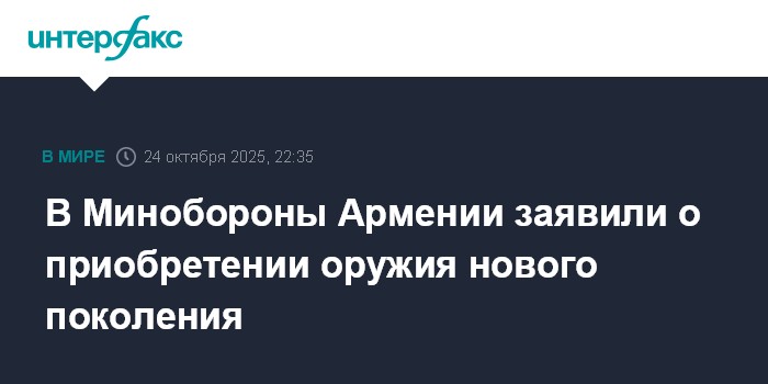 В Минобороны Армении заявили о приобретении оружия нового поколения