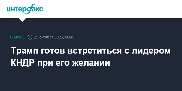 Москва. 25 октября. INTERFAX.RU - Президент США Дональд Трамп заявил, что готов встретиться с лидером КНДР Ким Чен Ыном в ходе поездки в Азию, если тот изъявит такое желание.