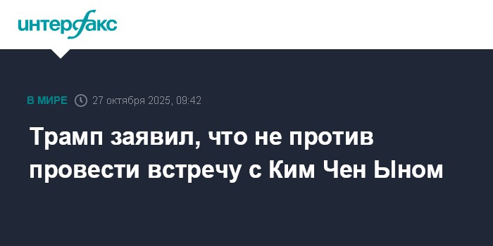 Москва. 27 октября. INTERFAX.RU - Президент США Дональд Трамп заявил, что будет готов встретиться с председателем госсовета КНДР Ким Чен Ыном в ходе нынешней поездки по странам Азии, если северокорейский лидер этого захочет.