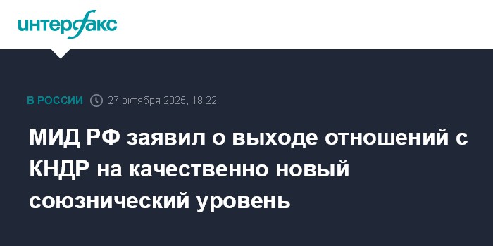 МИД РФ заявил о выходе отношений с КНДР на качественно новый союзнический уровень