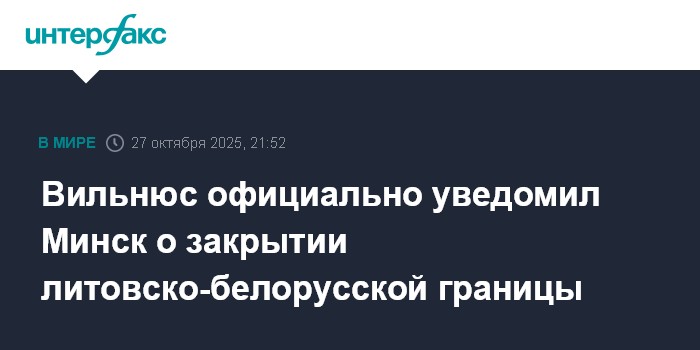 Москва. 27 октября. INTERFAX.RU - МИД Литвы направил Белоруссии ноту протеста в связи с инцидентами с метеозондами контрабандистов и объявил, что закрывает границу "до дальнейшего уведомления".