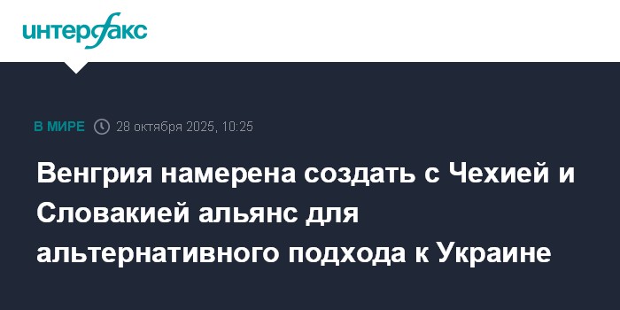 Москва. 28 октября. INTERFAX.RU - Венгерская сторона намерена вместе с Чехией и Словакией создать альянс в ЕС, "скептически ориентированный в отношении Украины", пишет во вторник издание Politico со ссылкой на советника премьера Венгрии Балаша Орбана.