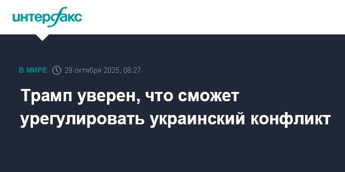 Москва. 29 октября. INTERFAX.RU - Президент США Дональд Трамп выразил уверенность, что ему удастся урегулировать украинский конфликт.
