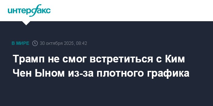 Москва. 30 октября. INTERFAX.RU - Президент США Дональд Трамп объяснил, что не успел во время азиатского турне провести встречу с северокорейским лидером Ким Чен Ыном, но он готов вернуться в регион для такой встречи в будущем.