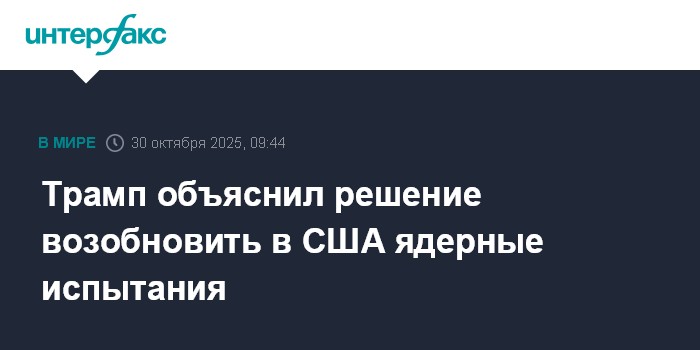 Ранее Трамп написал в соцсети Truth Social: "Из-за программ испытаний в других странах я поручил Военному министерству начать испытания нашего ядерного оружия на равной основе. Этот процесс начнется немедленно".