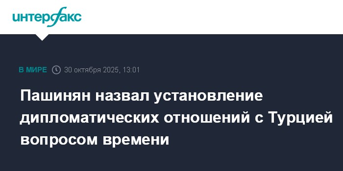 Москва. 30 октября. INTERFAX.RU - Премьер-министр Армении Никол Пашинян назвал вопросом времени установление дипломатических отношений между своей страной и Турцией и открытие границы между ними.