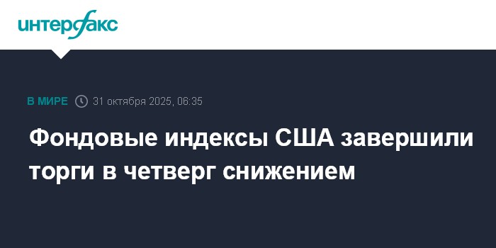 Москва. 31 октября. INTERFAX.RU - Фондовые индексы США завершили сессию четверга в минусе, инвесторы оценивали отчетности компаний и заявления главы Федрезерва относительно ближайших перспектив денежно-кредитной политики.