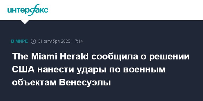 "Собеседники The Miami Herald сообщили, что администрация Трампа приняла решение об ударах по военным объектам на территории Венесуэлы; атаки могут последовать в любой момент", - передает газета.