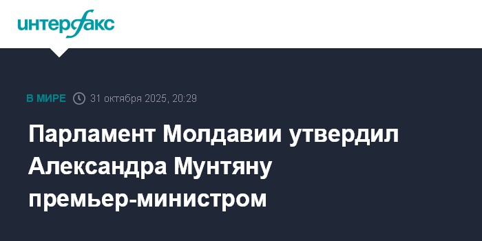 Москва. 31 октября. INTERFAX.RU - Парламент Молдавии 55 голосами из 101 утвердил Александра Мунтяну премьер-министром страны, проголосовав за выражение доверия его правительству, передало госагентство Молдпрес.