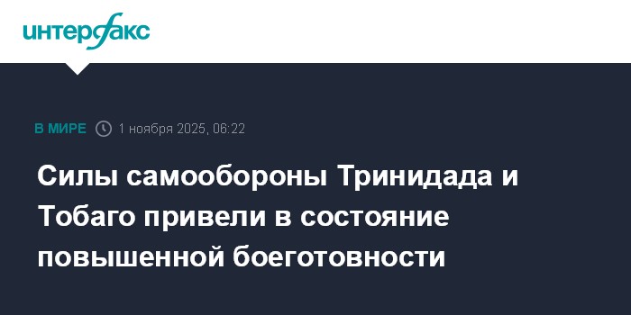 Москва. 1 ноября. INTERFAX.RU - Силы самообороны Тринидада и Тобаго переведены на "наивысший уровень оперативной боевой готовности", сообщило местное издание Daily Express издание, ссылаясь на высокопоставленные источники.