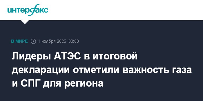 Москва. 1 ноября. INTERFAX.RU - Лидеры стран-участниц Азиатско-Тихоокеанского экономического сотрудничества (АТЭС) признают важную роль природного газа и СПГ (сжиженного природного газа) в обеспечении устойчивого и безопасного доступа стран региона к источникам энергии, говорится в итоговой декларации саммита АТЭС, состоявшегося в Республике Корея на этой неделе.