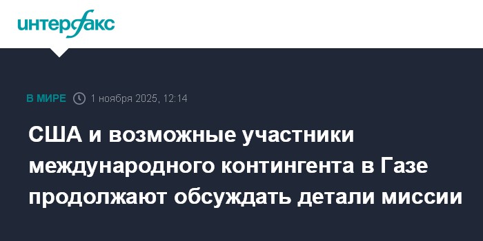Москва. 1 ноября. INTERFAX.RU - США и потенциальные государства-участники международных стабилизационных сил в секторе Газа продолжают прорабатывать различные аспекты данной миссии, сообщает CNN со ссылкой на источник.