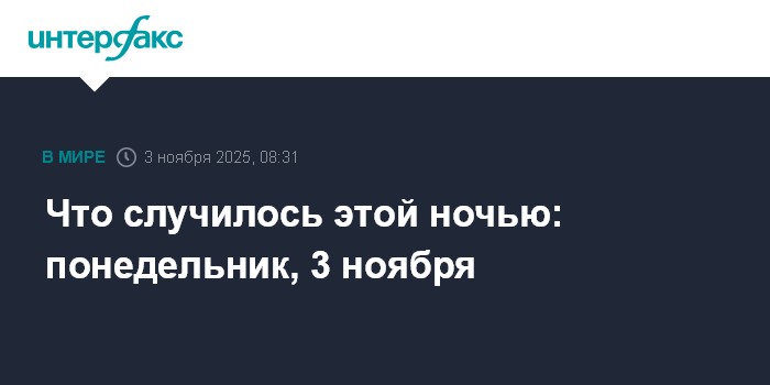 Москва. 3 ноября. INTERFAX.RU - Краткая сводка событий, произошедших к утру: