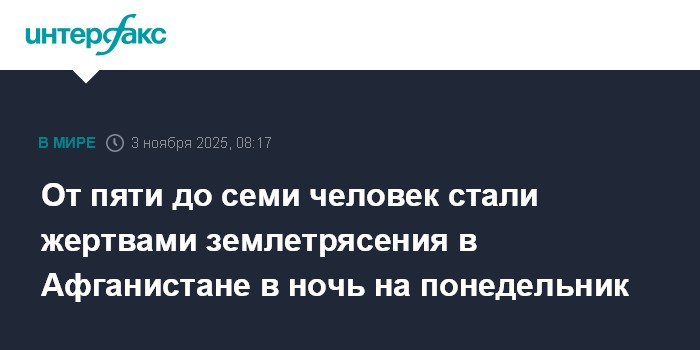 От пяти до семи человек стали жертвами землетрясения в Афганистане в ночь на понедельник