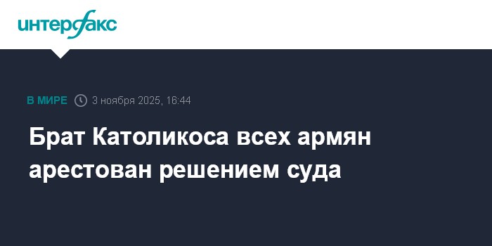 Москва. 3 ноября. INTERFAX.RU - Брат Католикоса всех армян Гарегина Второго Геворк Нерсисян арестован решением суда на один месяц, сообщил журналистам адвокат Ара Зограбян.