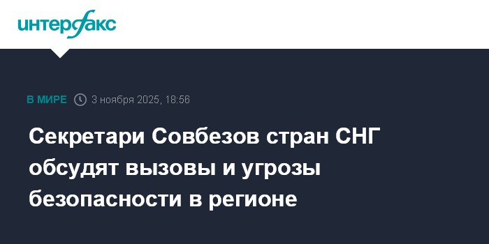 Москва. 3 ноября. INTERFAX.RU - Встреча секретарей Советов безопасности государств СНГ состоится в Москве в среду, стороны обсудят региональную безопасность, сообщили в аппарате Совбеза РФ в понедельник.