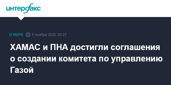 Москва. 5 ноября. INTERFAX.RU - ХАМАС и Палестинская национальная администрация (ПНА) пришли к соглашению о создании временного комитета, который будет управлять сектором Газа, заявил член политбюро ХАМАС, глава управления международных отношений движения Муса Абу Марзук в интервью телеканалу "Аль-Джазира".