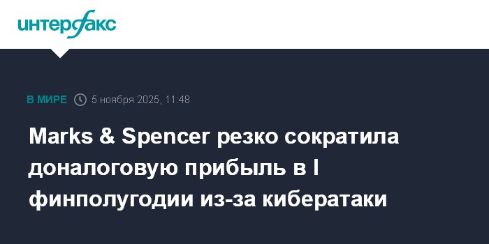 Москва. 5 ноября. INTERFAX.RU - Британская сеть универмагов Marks & Spencer Group Plc (M&S) резко сократила доналоговую прибыль в первом финансовом полугодии из-за хакерской атаки и утечки данных пользователей.