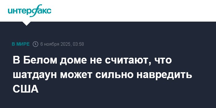 Москва. 6 ноября. INTERFAX.RU - Президент США Дональд Трамп считает, что продолжающееся закрытие правительства (шатдаун) не наносит ущерба национальной экономике.