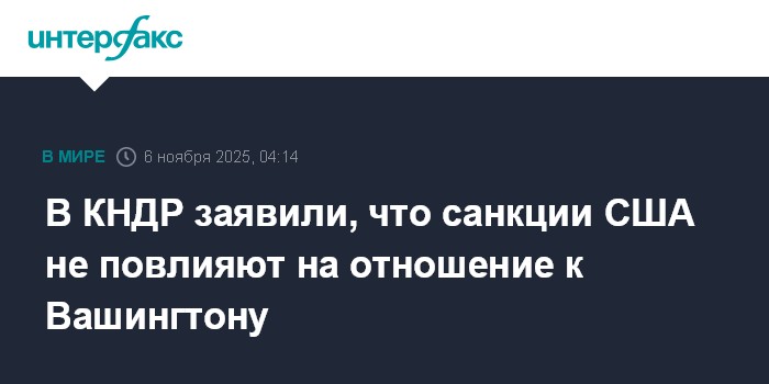 Москва. 6 ноября. INTERFAX.RU - КНДР осуждает введенные против нее санкции США и заявляет, что они не будут иметь никакого значения для политики Пхеньяна по отношению к Вашингтону.