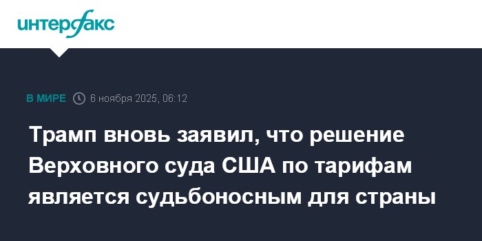 Трамп вновь заявил, что решение Верховного суда США по тарифам является судьбоносным для страны