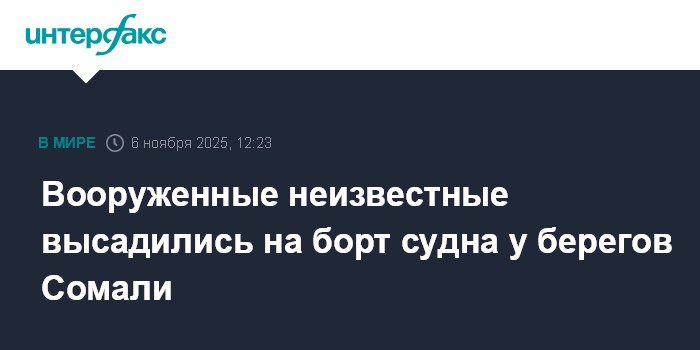 Москва. 6 ноября. INTERFAX.RU - В управлении морских торговых операций Великобритании заявили об инциденте с проникновением неизвестных на судно у берегов Сомали, сообщает в четверг "Аль-Арабия".