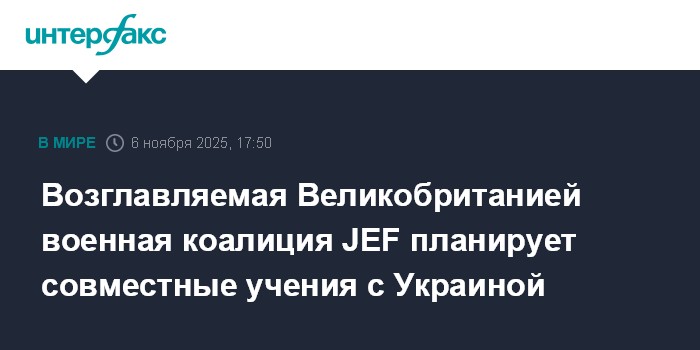 Москва. 6 ноября. INTERFAX.RU - Коалиция JEF (UK Joint Expeditionary Force, Объединенные экспедиционные силы Великобритании) расширит сотрудничество с Украиной, в том числе путем проведения совместных военных учений, сообщило Минобороны Литвы.