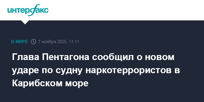 Москва. 7 ноября. INTERFAX.RU - США нанесли удар по катеру наркотеррористов в Карибском море, три человека, которые находились на борту, убиты сообщил в соцсети глава Пентагона Пит Хегсет.