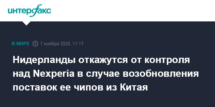 Нидерланды откажутся от контроля над Nexperia в случае возобновления поставок ее чипов из Китая