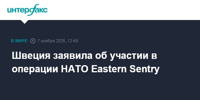 Генсек НАТО Марк Рютте 12 сентября сообщил о начале операции Eastern Sentry на восточном фланге альянса. Целью операции заявлено "устранение конкретных угроз, связанных с использованием беспилотников". Об участии в Eastern Sentry, помимо Швеции, заявили Великобритания, Дания, Германия, Испания, Италия, Нидерланды, Норвегия, Португалия, США, Франция и Чехия.