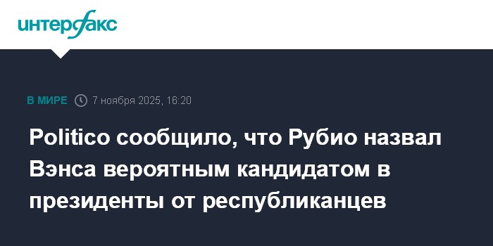 "Рубио очень ясно дал понять, что Вэнс станет кандидатом от Республиканской партии, если захочет", - сказал собеседник издания.