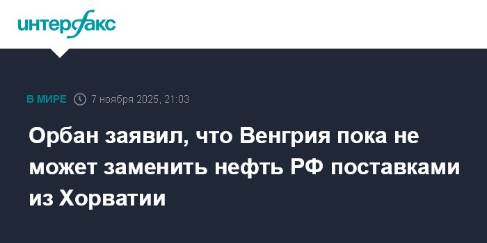 Орбан заявил, что Венгрия пока не может заменить нефть РФ поставками из Хорватии