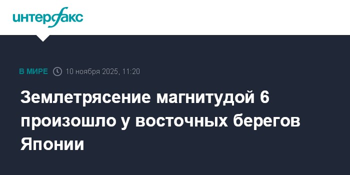 Москва. 10 ноября. INTERFAX.RU - Землетрясение магнитудой 6 зафиксировано в акватории Тихого океана у восточного побережья острова Хонсю (Япония), сообщает Алтае-Саянский филиал Единой геофизической службы РАН.