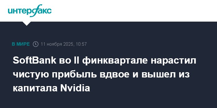 В октябре SoftBank также продала оставшиеся 32,1 млн акций Nvidia Corp. за $5,83 млрд.