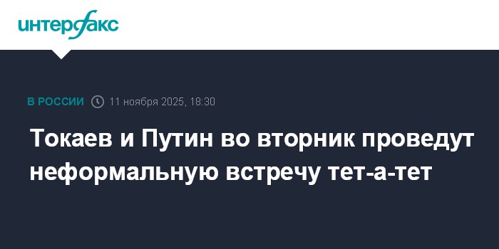 Москва. 11 ноября. INTERFAX.RU - Президенты Казахстана и России Касым-Жомарт Токаев и Владимир Путин во вторник в Кремле проведут неформальную встречу тет-а-тет, переговоры в узком и расширенном составах состоятся в среду, сообщил в соцсети пресс-секретарь казахстанского лидера Руслан Желдибай.