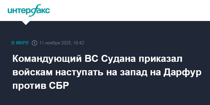 Командующий ВС Судана приказал войскам наступать на запад на Дарфур против СБР