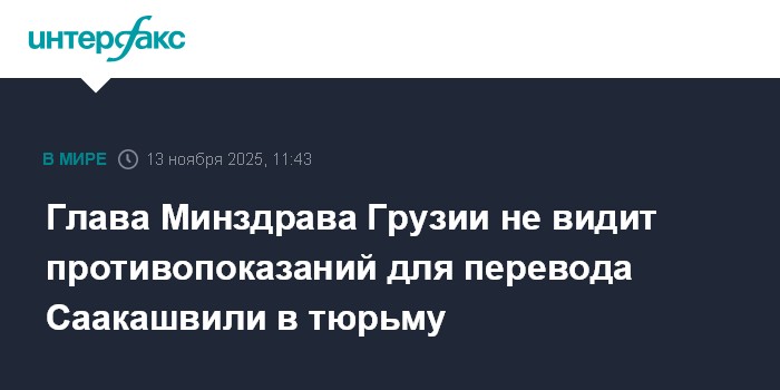 Москва. 13 ноября. INTERFAX.RU - Министр здравоохранения Грузии Михаил Сарджвеладзе считает абсолютно логичным и правильным решением возвращение бывшего президента Грузии Михаила Саакашвили из медицинской клиники в пенитенциарное учреждение.