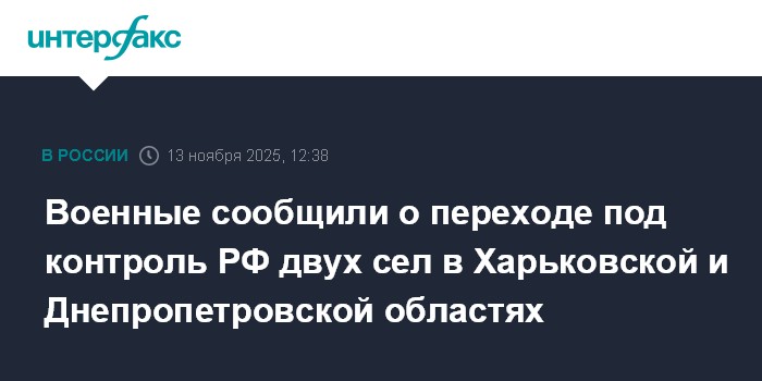 Москва. 13 ноября. INTERFAX.RU - Российская армия установила контроль над селами Даниловка в Днепропетровской области и Синельниково в Харьковской области, сообщило Минобороны РФ в четверг.