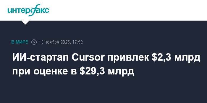 Москва. 13 ноября. INTERFAX.RU - Американский стартап Cursor, разработчик ИИ-помощника для программирования, привлек $2,3 млрд при общей оценке стоимости в $29,3 млрд, пишет The Wall Street Journal.