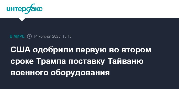 Москва. 14 ноября. INTERFAX.RU - Администрация США одобрила продажу Тайваню военного оборудования на $330 млн, сообщают в пятницу американские СМИ.