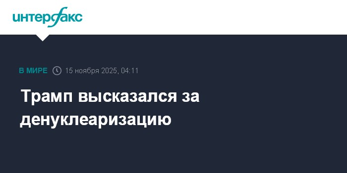 Москва. 15 ноября. INTERFAX.RU - Президент США Дональд Трамп заявил о важности денуклеаризации и выразил готовность обсудить эту проблему с Россией и КНР.