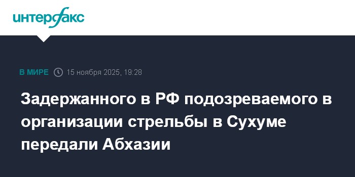 Москва. 15 ноября. INTERFAX.RU - Правоохранительные органы России передали Абхазии подозреваемого в подготовке и организации стрельбы, произошедшей 11 ноября в Сухуме, сообщает Служба госбезопасности республики.